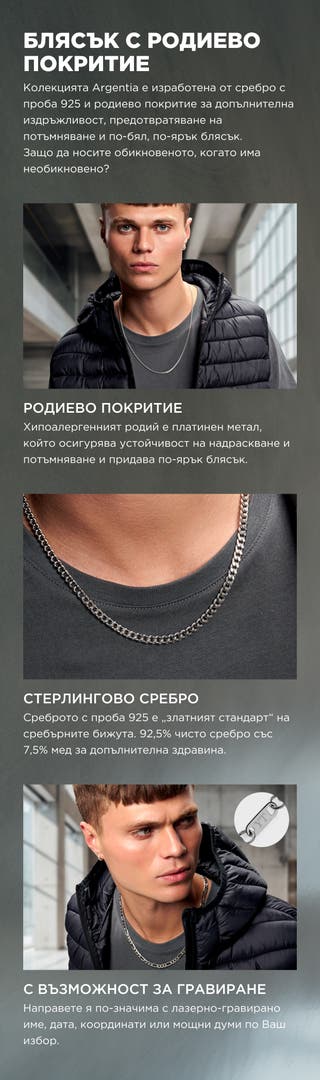 Argentia | Сребърно колие от верижка фигаро с родиево покритие 6 мм