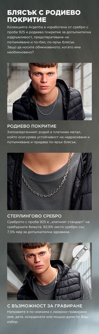 Argentia | Сребърно колие от верижка тип въже с родиево покритие 2 мм