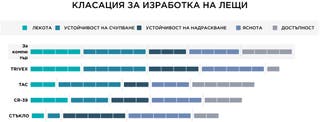 Ако оптичната яснота е основната Ви грижа, нищо не може да се сравни със стъклото. За активен начин на живот поликарбонатните или Trivex лещи предлагат издръжливост и защита. Лещите TAC са чудесни за намаляване на отблясъците, без да счупват касичката Ви, докато CR-39 осигурява златната среда за ежедневна употреба.