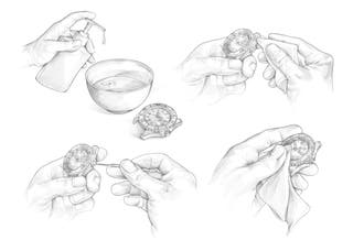 - Навлажнете кърпа за почистване на бижута и нанесете малка капка мек сапун.