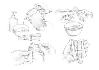 - Напълнете купата с хладка вода и добавете няколко капки мек препарат за миене на съдове.