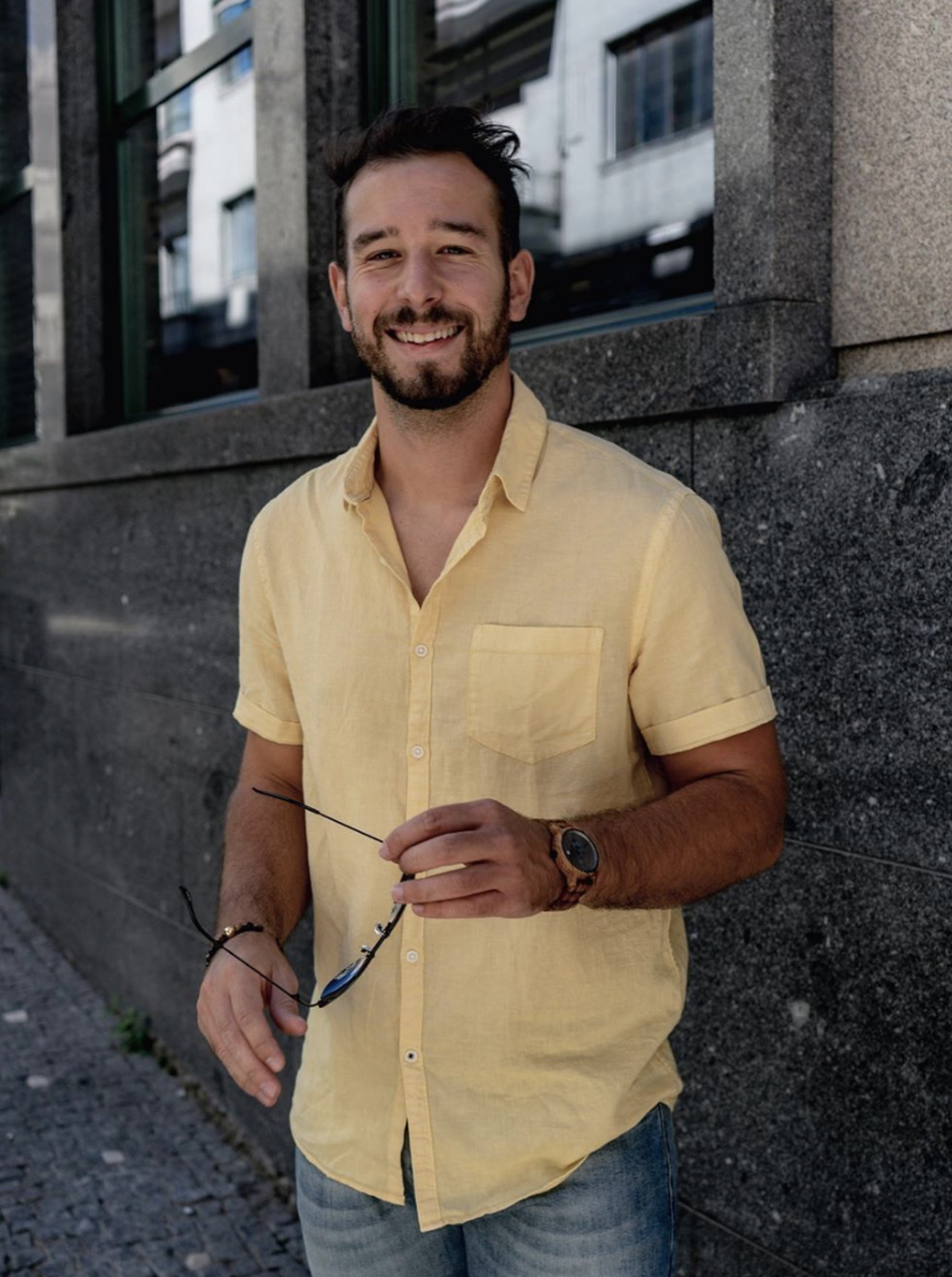 Перфектен пролетен вид, който балансира лекота и стил. Светложълтата риза с откритата яка и къси ръкави излъчва непринудена елегантност, докато тъмно сините джинси добавят структура и контраст. Аксесоари като изчистен часовник с кожена каишка и очила с костенуркова рамка завършват облеклото с непринуден, но изискан допир. Без усилие и с много слънчев чар.