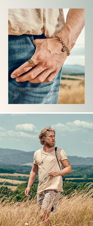 Atlas | Златист стоманен пръстен печат със Северна звезда