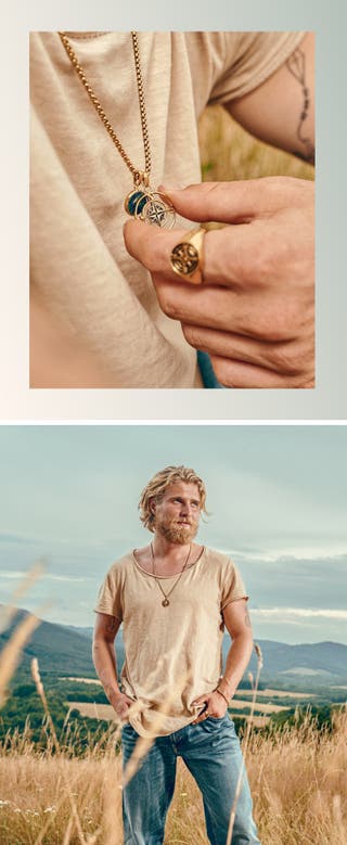 Atlas | Златисто колие с азурмалахит и Северна звезда
