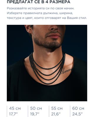 Когато се носи самостоятелно, колието изглежда изчистено и подредено. В комбинация с други колиета добавя дълбочина, без да доминира. Черното покритие се съчетава добре с ризи, якета и едноцветни тениски, така че лесно пасва на ежедневни тоалети.