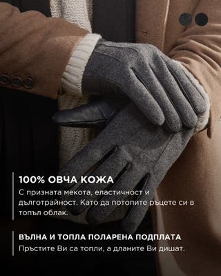 В комбинация с палто или по-леко яке тези ръкавици запазват пропорциите и създават изчистен силует. Контрастът между кожа и вълна е модерен, но сдържан - подходящ за пътуване до работа или за неформална употреба в града. Пръстите са оформени за естествено прилягане, което позволява свободно движение и работа с ежедневни предмети.
