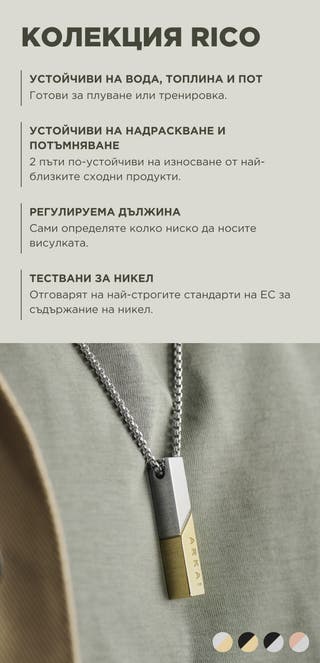 Когато се носи самостоятелно, вертикалната лента седи близо до гърдите и дава модерен акцент. Подхожда както с други колиета, така и самостоятелно с тениска или риза с яка. Контрастът между черното и полирания метал е прост и ясен. Чистите линии и фината гравировка запазват минималистичната визия без да отвличат вниманието от облеклото.
