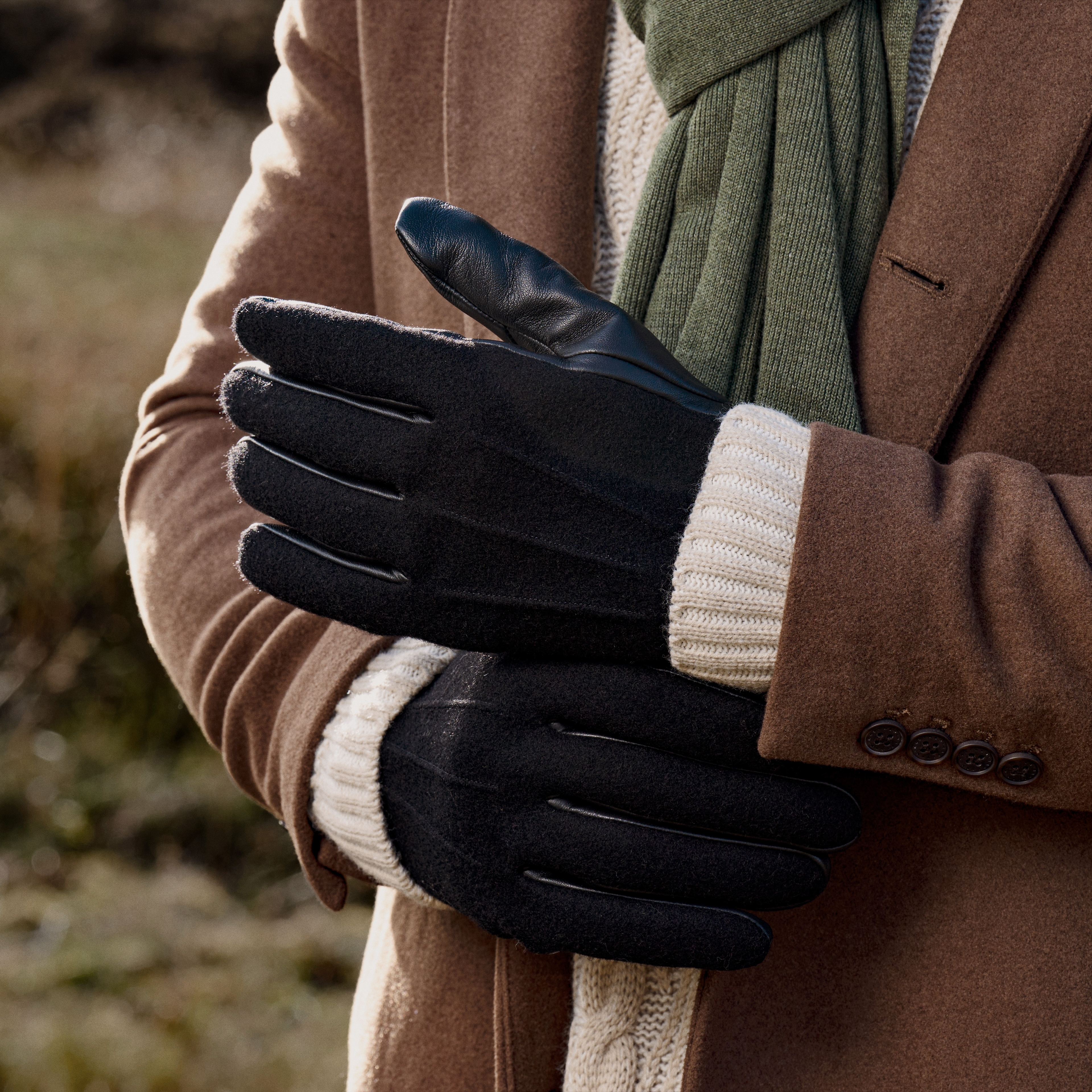 Hiems | Сиво-черни ръкавици от кожа и вълна
