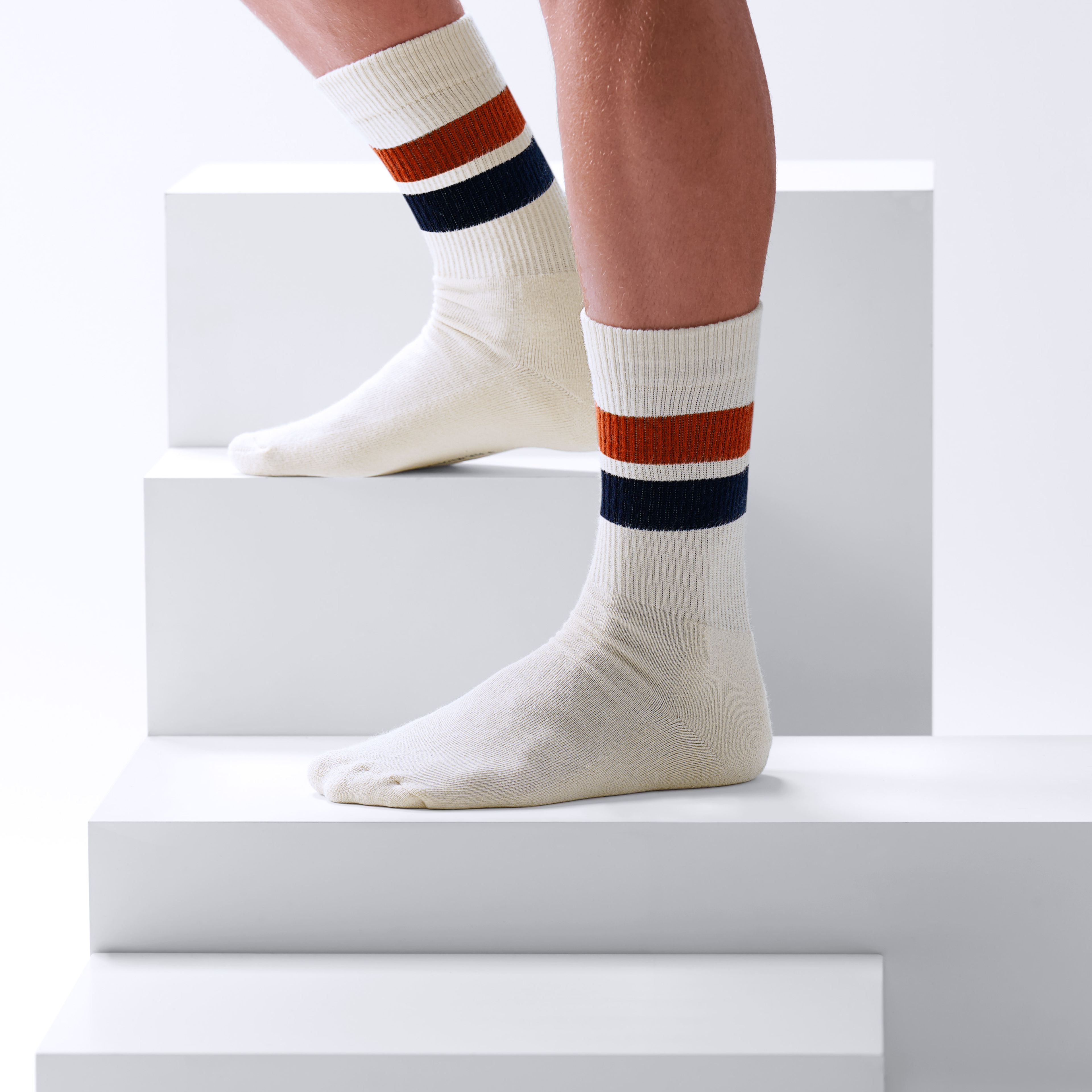 DryFeel | Памучни тенис чорапи с черни райета в антично бяло