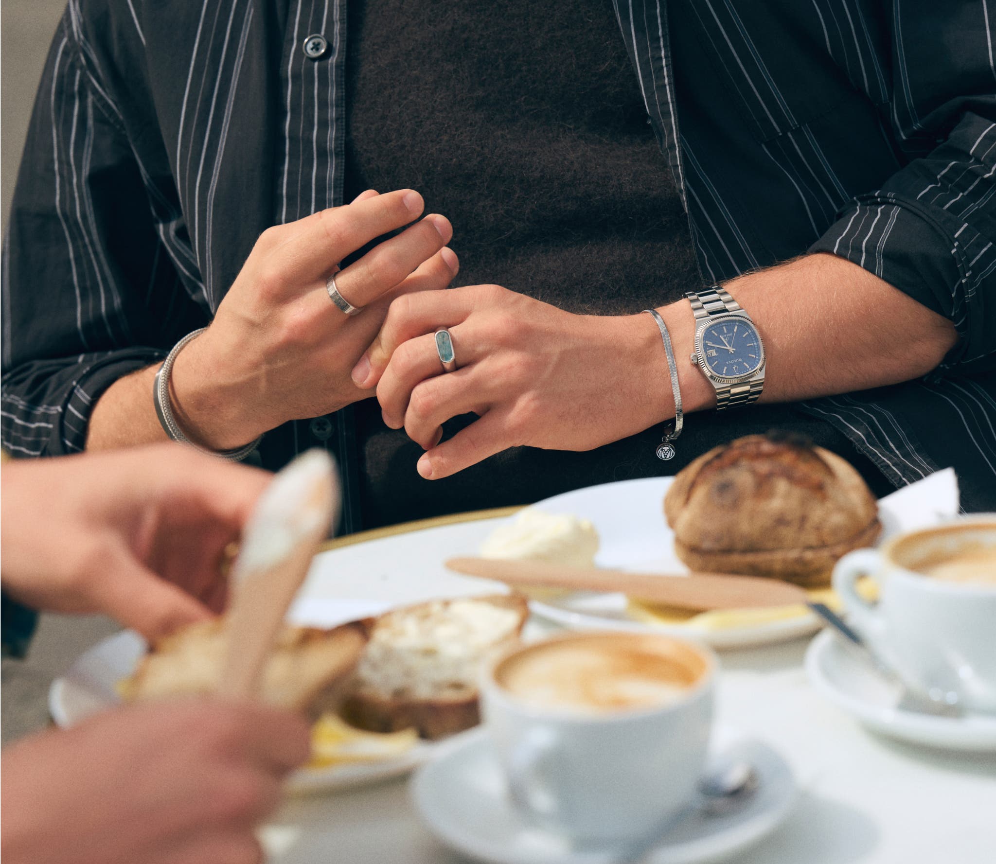Елегантен часовник, комбиниран с водоустойчиви гривни от хирургическа стомана, пръстени и колиета, които завършват вашия ежедневен стил.