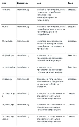 Ако имате въпроси, свързани с тази политика за бисквитките, можете да се свържете с нас на info@trendhim.bg