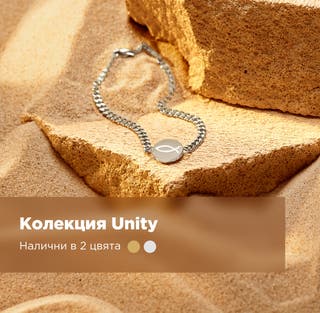 Unity | Сребриста стоманена гривна с ихтисUnity | Златиста стоманена гривна с ихтис
