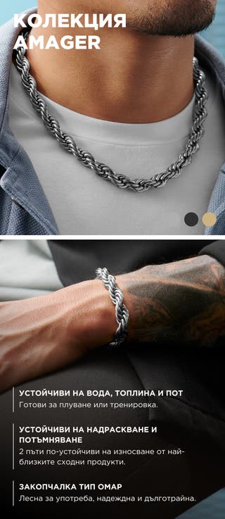 Златисто колие от верижка тип въже 10 мм Collin AmagerСребристо колие от верижка тип въже 10 мм Collin AmagerТъмносиво колие от верижка тип въже 10 мм Collin Amager